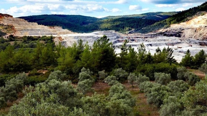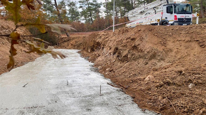 Çanakkale Bayramiç ilçesi Hacıbekirler köyünde bakır madeni için ormana beton dökülürken. 2024. Fotoğraf: https://www.t24.com.tr