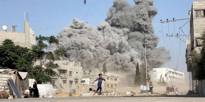 Gazze Şeridi'nde Bureyj mülteci kampında bir okula İsrail saldırısı sırasında. 17 Temmuz 2025. Fotoğraf: Reuters Haber Ajansı