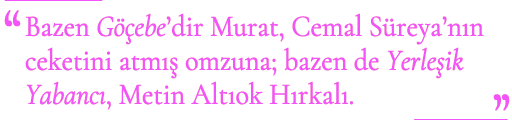 Bazen Göçebe'dir Murat, Cemal Süreya'nın ceketini atmış omzuna; bazen de Yerleşik Yabancı, Metin Altıok Hırkalı. Göçebedir; Ankara'ya göçer, İstanbul'a göçer, Asos'a göçer; lokantaların, kafelerin tuvaletini kullanır. Bazen yerleşiktir; A Kitabevi'ni devralır Ahmet Erhan'dan, dergiler çıkarır sayısız, A Şiir Evini kurar, kirasını bina görevliliği yaparak öder.