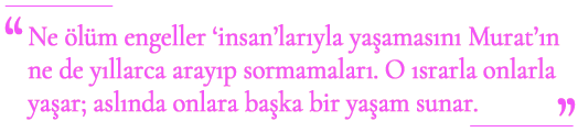 Onu bir göçebelik evresinde tanıdım ben. Özel olarak diktirdiği, bir sürü cepleri olan önlüğüne yerleştirdiği kitapları ve o zamanlar çıkardığı Rüzgâr dergisinin eski sayılarını satarken yine tuvalete sıkıştığı için girdiği Edebiyat Koop.'un lokalinde. Göçebeliğinin bir evresine de orası tanıktır işte. Oradaki tanışıklığımız, Rüzgâr dergisinde bir şiirimin yayımlanmasıyla onu yakından tanımaya doğru biraz daha ivmelendi. Bir gün İstiklal'de, YKY'nin önünde denk geldim Murat'a. Yine bağıra çağıra şiir okuyordu o koca gövdesiyle. Hoyratça okuyordu, korkuturcasına, tedhiş edercesine, içinde bir parça delilik taşımayanların asla yaklaşamayacağı korkunçlukla. Tabii, yaklaştım. Bütün korkunçluğu kayboldu, o koca gövde erimeye başladı, o taşkın ses incelmeye. Ayaküstü konuşmak yerine, YKY'nin önüne oturduk. Alnına biriken terleri sildi yağlığına, nefeslendi. Rüzgâr'da şiiri / yazısı yayımlanan insanlarla kurduğu özel bağdan bahsetti. Bunu bana da hissettirdi. Özel bağı olan insanlara "insan" derdi; sözcüğün anlamı değişirdi. Sözcüğün bu yeni anlamıyla "insan" olmuştum onun nazarında ben de. Kalktık. Caddenin tam ortasındayız. Hem enlemesine hem de uzunlamasına. E yol var yürünecek, meydan yönünde başladık yürümeye. Yürürken bildiği en iyi şeyi yapacaktı ki, yaptı. Bir farkla; Rüzgâr'ın son sayısını çıkardı. Adı "Homunculus" olan şiiri buldu sayfalar arasından ve bağıra çağıra okudu. O üç beş dakika bitmek bilmedi. Ayaklarım bu tanıdık gelen dizelerle uyumlu adımlar atamadı bir türlü. Mis Sokak'a adımımızı attığım anda rahatladığımı hatırlıyorum. Sokağın sonundaki kafeye oturduk. Bir süredir müdavimdim buraya, adını sanını bilmediğim sarışın bir gerekçem vardı. Hemen her gün okul çıkışı gelip birkaç saatimi geçiriyordum burada. Çaylar içtik, Rüzgâr, bitmeyen bir cümle gibiydi Murat'ta. Rüzgâr'ı konuşmaya devam ettik; Rüzgâr'da yazan "insan"larını Murat'ın. Hepsi de yazılarıyla, şiirleriyle değil; hikâyeleriyle vardı Rüzgâr'da ve Murat'ta. Dudaklardan değil, çok daha içer'lerden boğumlanan, inceldikçe incelen bir tınıyla havaya karışıyordu o hikâyelerin her biri.