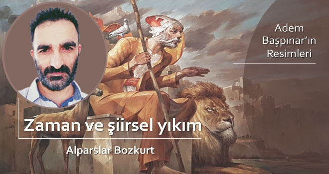 Yanı başında gündelik olana karışıp akıp giden zamanın karşısına, bilincinde katılaşan geçmişle geleceğin arasında sıkışarak donup kalmış, yıkım ve ateşten bir tutkuyla şekillendirdiği büyüleyici imgelerle çıkar Adem Başpınar. Resmini şekillendirdiği her rengi, her ışık parçasını duyusal bir çekimle bir araya getirip yaşadığı çağın üzerine bırakır, bozulmuş bir uyumdan geriye kalan parçalanmışlığın ve yeniden oluşun sonsuz döngüsünü bilip, anlayarak.