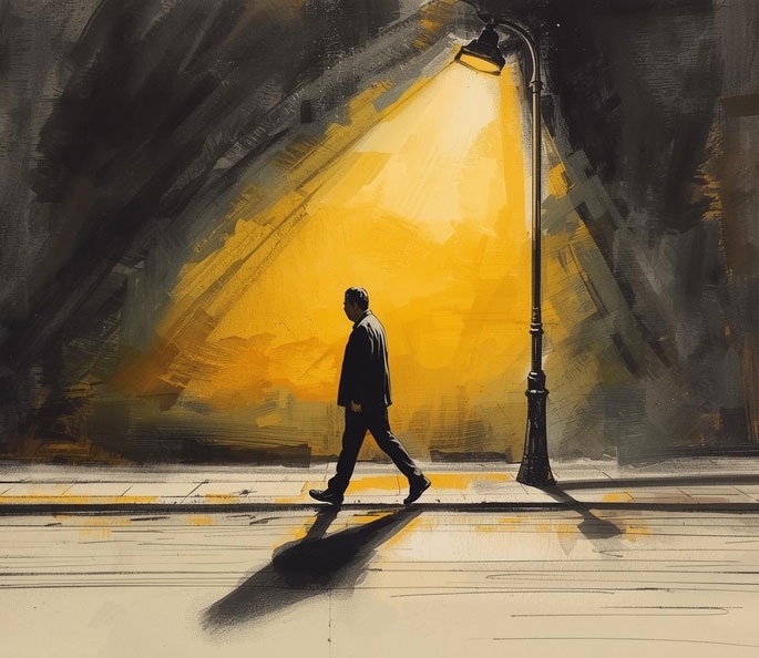 Sokak lambasının altında durdu. Kendi boyunu geçmeyen gölgesine baktı. Beğenmedi. Biraz ilerledi. Boyuna denk bir gölge mesafesine geldi. "Artık şartlar eşit," diye düşündü ve gölgesiyle konuşmaya başladı. Ama ne zaman konuşmaya başlasa istemsiz şekilde yürürdü. Yürüdükçe gölgesi uzadı. Sesi donuklaştı. Gölgesi onu korkutmuştu. Hızlıca geriye doğru yürüyüp gölgesini iyice kısalttı.