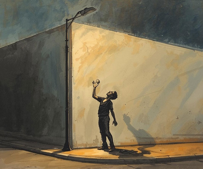 Tekrar arkasını dönüp taşa doğru üçüncü çıkarmasını yaptı. Taşı tekrar eline aldı. Bu sefer akıllanmıştı. Lambaya iyice yaklaştı ve taşı fırlattı. "Dınk!" diye bir ses geldi lambanın camından. "Dınk, dınk" diye iki kez tekrar eden yankı eşliğinde taş, ayaklarının dibine düştü. Bu sefer gölgesiyle yarışmak zorunda değildi. Ama daha sert atsaydı, ahh, daha sert atsaydı, "ne kabiliyetsiz herifsin, kovuldun diyen" patronuna, o an atamadığı, ama hep hayalini kurduğu yumruğu atmış olacaktı.